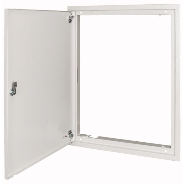 Flush-mounted service distribution board, 3-component flush-mounted door frame IP30, with door, fireproof, BP-U-3S...-EW, steel plate, powder-spray painted, white RAL 9016, outside width 635 mm, outside height 2060 mm, equipment supplied: frames, fireproof door (metal hinges and lock), three-point turn-lock