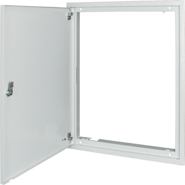 Flush-mounted service distribution board, 3-component flush-mounted door frame IP30, with door, fireproof, BP-U-3S...-EW, steel plate, powder-spray painted, white RAL 9016, outside width 1035 mm, outside height 1560 mm, equipment supplied: frames, fireproof door (metal hinges and lock), three-point turn-lock