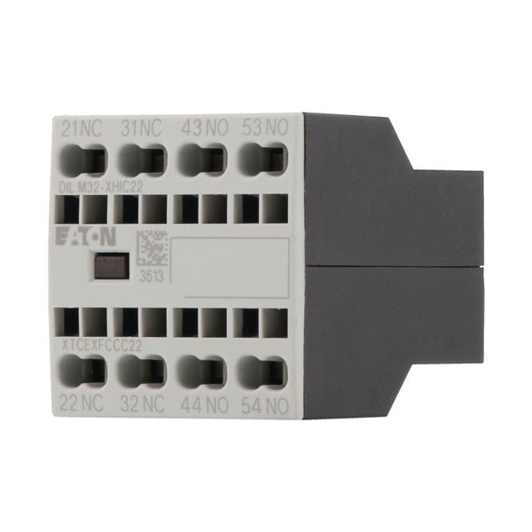 Auxiliary contact module, 4 pole, Ith= 16 A, 2 N/O, 2 NC, Front fixing, Spring-loaded terminals, DILM7-10 - DILM38-10 |
