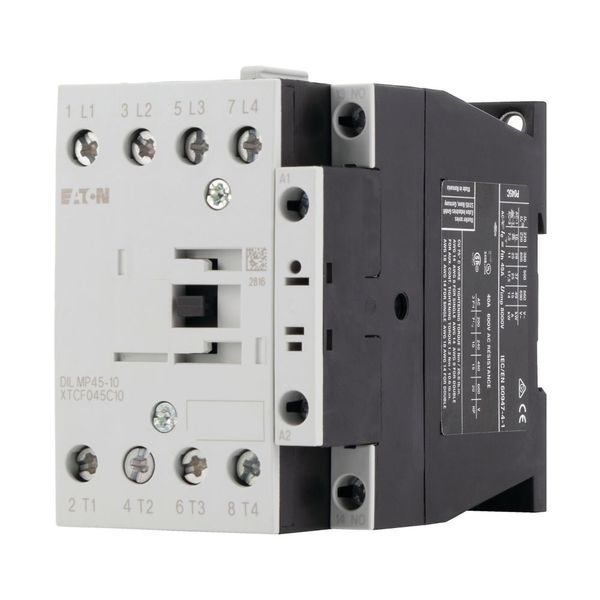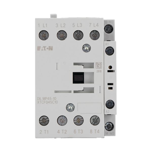 DILMP45-10(RDC24) Contactor, 4 pole, DC operation, AC-1: 45 A, 1 N/O, RDC 24: 24 - 27 V DC, Screw terminals |