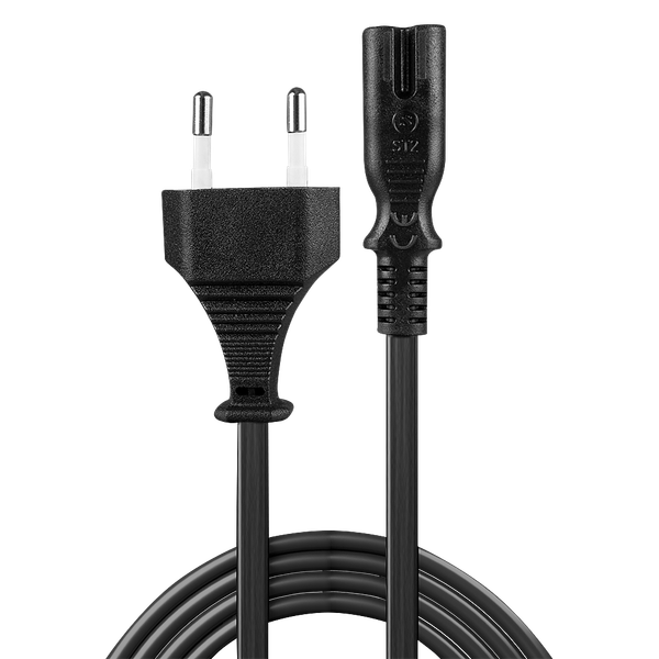 Euro Mains Plug to IEC C7 Cable for use in professional areas and private sectors Provides max. 2.5A/250V to a device Robust PVC housing and cable jacket, lead-free connectors (<0.1% lead in brass) High temperature resistance allows the cable to be used in non air-conditioned areas 10 year warrantyLindy Power Cables are high quality, reliable power delivery connections for use in a wide variety of professional and home environments.This cable is perfect for the connection between small devices, such as beamers, DVD-players, small household devices and many more with IEC C8 port and the European electricity grid. The Euro connector works in many European countries.The brass used in the connectors has a lead content of far below 0.1% and is therefore SVHC-free, as are all other materials used in these cables.Please note that this cable is for use in dry areas only.Euro Mains Plug to IEC C7 Mains Cables are available in the following lengths: 2m, 3m and 5m.