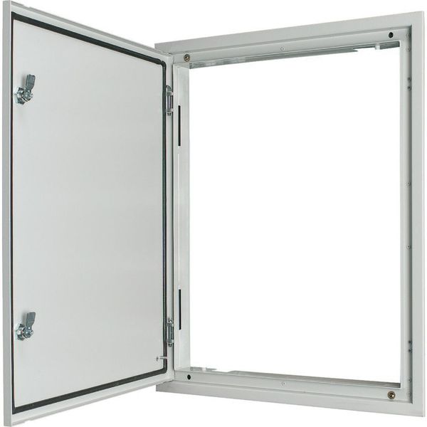 3-component IP54 flush-mounted door frame, with door, BPM-U-3S-...Width 600 mm, outside height 1060 mm, front plate height 950 mm, with foamed gasket for damp location applications, double-bit lock, material characteristic: powder-spray painted aluminum, RAL 9016, equipment supplied: frames, door with hinges
