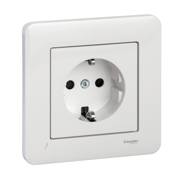 Schneider Electric Exxact socket-outlet WDE008276 in color white is a complete product with 1 outlet. This device is already complete with Exxact frame. The outlet pole configuration of this socket-outlet is 2P + E with shutters. And it's rated current is 16A. Flush mounting is supported so that its box can be recessed into the surface and unexposed. The connection terminals of this socket-outlet are screw terminals. It is 87 mm in width, 87 mm in height, 28 mm in embedding depth, 11.8 mm in projecting depth. And it reaches IP20 degree of protection too. Being made of ASA + PC material, this socket-outlet is very reliable and resistant. Standards of DIN VDE 0620-1, IEC 60884-1, NEK 502:2006, SFS 5610:2004, SS 4280834 are well met. It obtained FIMKO, NEMKO, SEMKO certificate as well. Besides, this is a green premium product. And it is mercury, heavy metal free and SVHC (substances of very high concern) free too. Exxact is a wiring range developed from Nordic installation habits. As integrated solutions for energy and comfort controls, there are more than 250 functions and inserts to choose from.
