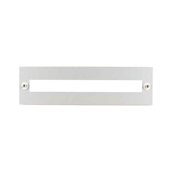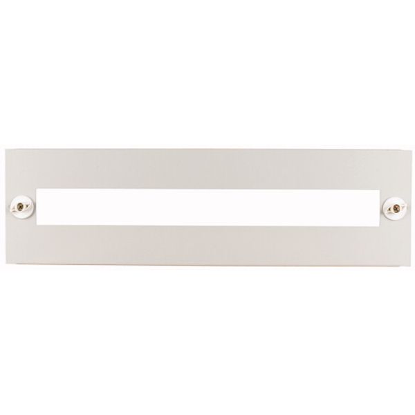 Service distribution system—Profi Plus (floor standing distribution board, surface-mounted and flush-mounted distribution boards). Front blanking plate, BPZ-FP-..-BL, needed to cover reserve areas and protect unused areas. Width 1200 mm, height 350mm, steel plate, powder-spray painted, RAL7035, metal front plate with electrical contact with enclosure, equipment supplied: 1 front plate