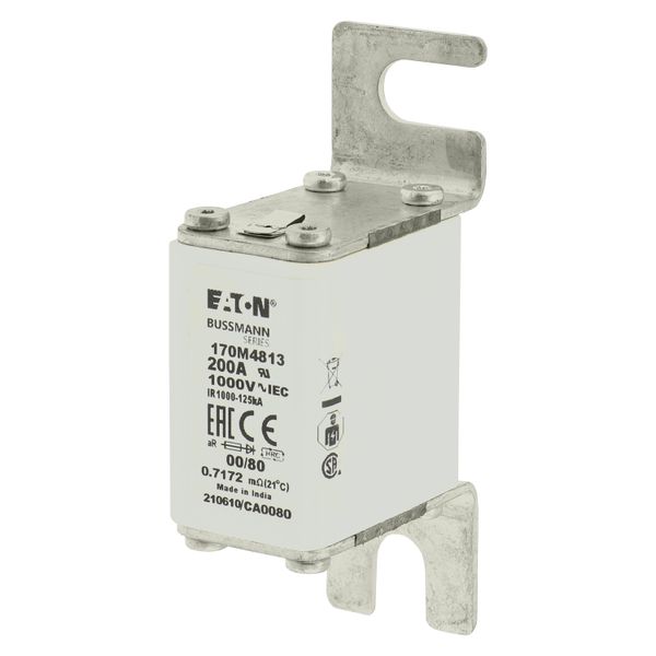 Fuse, Fuse-link, high speed, 80 A, AC 1000 V, size 00, 30 x 47 x 98 mm, aR, DIN, IEC, single indicator, square body with centre-bolted tags (slotted), semiconductor protection, DIN 43653, IEC 60269-4, Breaking Capacity 125 kA, Optional accessories fuse-holder 170H1007