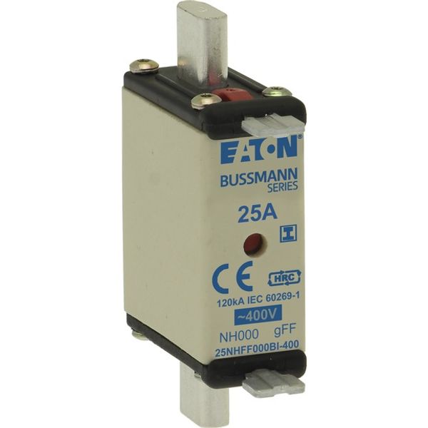 | Tootja nimi | Fuse-link, LV, 25 A, AC 400 V, NH000, gFF, IEC, dual indicator, insulated gripping lugs |