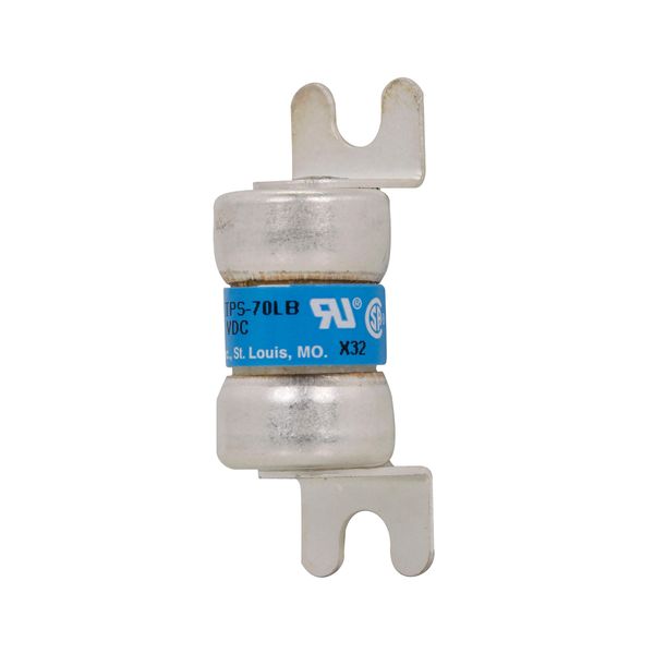 | Tootja nimi | Eaton Bussmann series TPS telecommunication fuse, PCB tab, bolt tag, 170 Vdc, 60A, 100 kAIC, Non Indicating, Current-limiting, Non-indicating, Glass melamine tube, Silver-plated brass ferrules |
