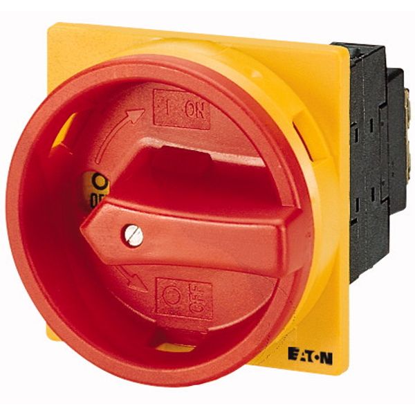 T0-1-102/EA/SVB Main switch, T0, 20 A, flush mounting, 1 contact unit(s), 2 pole, Emergency switching off function, With red rotary handle and yellow locking ring, Lo |