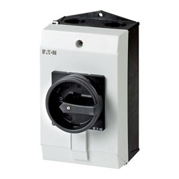 Main switch, Product range: Main switch, maintenance switch, Repair switch, Part group reference: T3, Stop Function: STOP function, With black rotary handle and locking ring, 1 pole, Locking facility: Lockable in the 0 (Off) position, Degree of Protection: IP65, Design: surface mounting, Switching angle: 90 °, Motor rating AC-23A, 50 - 60 Hz 400 V: P = 15 kW, Rated uninterrupted current: Iu = 32 A, 1 contact unit(s), Standards: IEC/EN 60947, VDE 0660, IEC/EN 60204, Switch-disconnector according to IEC/EN 60947-3