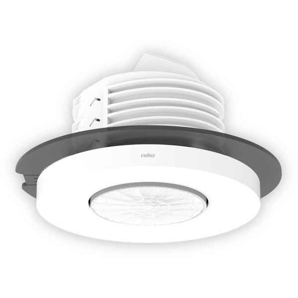 This flat and discrete presence detector is a DALI-2 master detector for DALI lighting control in up to 3 daylight zones. The SnapFit mounting bracket ensures a quick and stable mounting in all types of suspended ceilings with or without removable tiles. The lighting zones are defined during commissioning, using the Niko detector tool app and 2-way Bluetooth® communication between a smartphone and the detector. Finishing colour: white Compatible secondary detectors: 353-650021, 353-651021, 353-652021, 353-750021, 353-751021, 353-752021, 353-852011 Compatible controls: 170-00005, 170-00015, 170-70015, 170-70005, 360-21001 This article is protected by at least one patent (application). For more info on patents, see www.niko.eu/innovation.