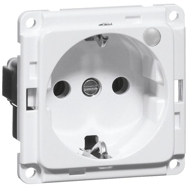 Steckdose SCHUKO mit Steckklemmen 16 A 250 V, mit Verbindungsklemmen nach VDE 0602, mit Frontbefestigung, mit Abdeckung, erhöhter Berührungsschutz gemäß VDE 0620 mit Kontrolllicht LED, grün