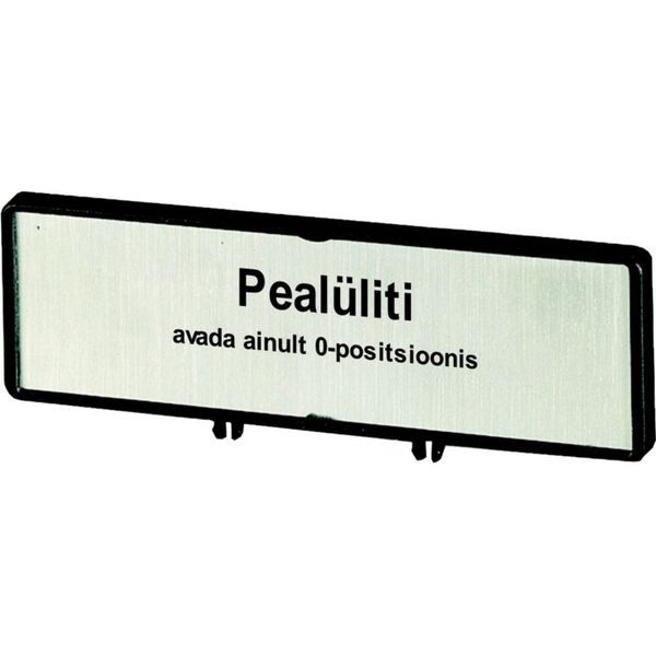 Clamp with label, For use with T0, T3, P1, 48 x 17 mm, Inscribed with standard text zOnly open main switch when in 0 positionz, Language Etonian |