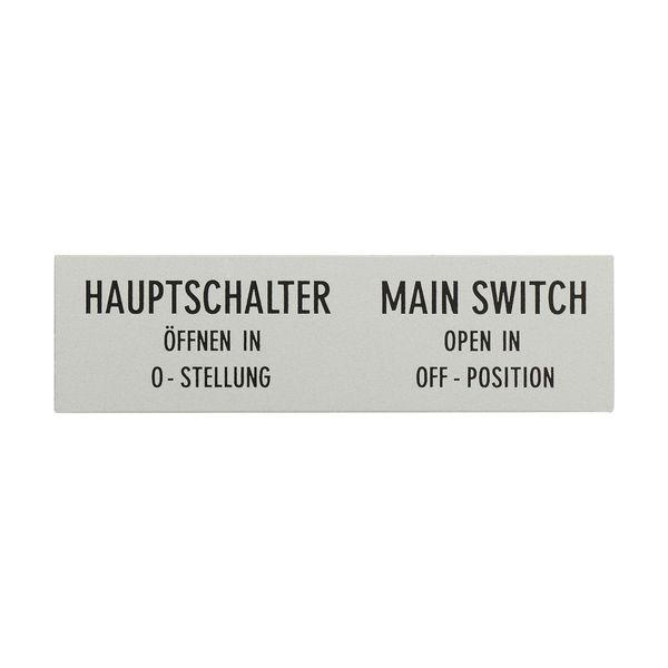 Clamp with label, For use with T5, T5B, P3, 88 x 27 mm, Inscribed with standard text zOnly open main switch when in 0 positionz, Language German/Engli