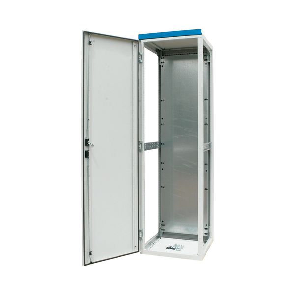 Frame, rear panel, door, roof closed, mounting plate 3 mm, multi-part bottom plates, lifting eyelets, double-bit lock