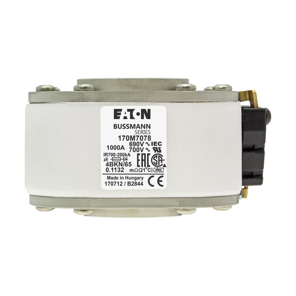 | Nom du fabricant | Fuse-link, high speed, 1000 A, AC 690 V, size 4, 105 x 120 x 67 mm, aR, IEC, UL, single indicator |