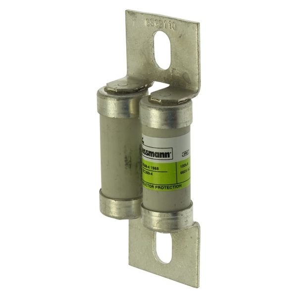 Fuse, Fuse-link, high speed, 110 A, AC 660 V, DC 400 V, BS88, 36 x 95 mm, aR, BS, ultra rapid, offset bolted tags (dual barrel), Protection of semi-conductor devices, BS88-4, Breaking Capacity 100 kA