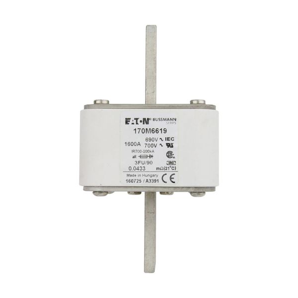 | Nom du fabricant | Fuse-link, high speed, 1600 A, AC 690 V, size 3, 76 x 92 x 135 mm, aR, IEC, UL |