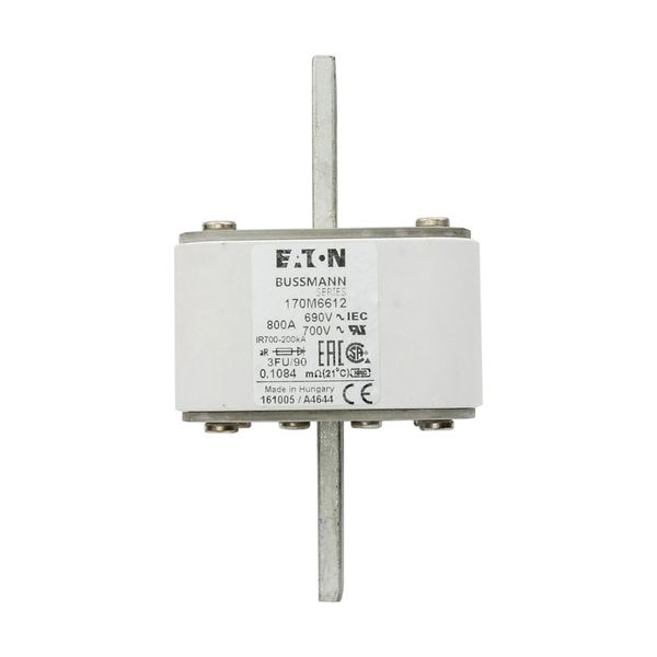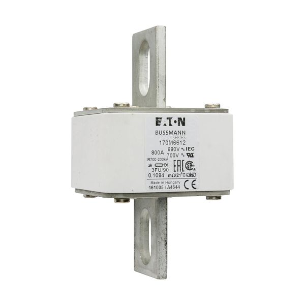 Fuse, Fuse-link, high speed, 800 A, AC 690 V, size 3, 76 x 92 x 135 mm, aR, IEC, UL, square body with centre-bolted tags, US style, semiconductor protection, IEC 60269-4, Breaking Capacity 200 kA