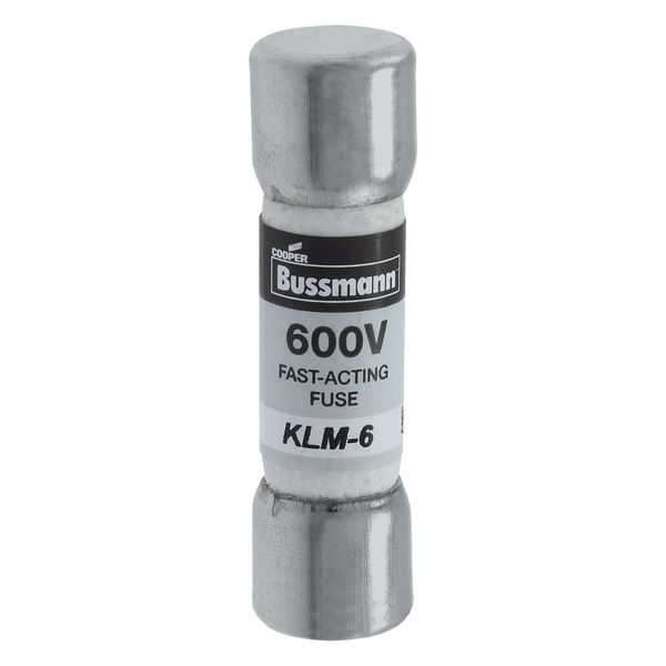 | Nom du fabricant | Eaton Bussmann series KLM fuse, 600 Vac, 600 Vdc, 6A, 100 kAIC at 600 Vac, 50 kAIC at 600 Vdc, Non Indicating, Fast acting, Ferrule end X ferrule end, Melamine tube, Nickel-plated bronze endcap |