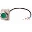 Illuminated pushbutton actuator, RMQ compact solution, Complete unit, Design: Flat, momentary, Connection type: Cable (black) with non-terminated end, 4 pole, Cable Length: 1 m, Color LED: green, button plate: green, Button plate Blank, Rated operational voltage LED: 24 V AC/DC, Name: None, Degree of Protection: IP66, IP67, IP69K (front), IP65 (on rear), Metal bezel, Connection to SmartWire-DT: no, N/O = Normally open: 1 N/O, Standards: IEC/EN 60947-5-1, VDE 0660