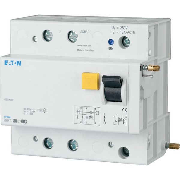 High-quality residual current circuit-breaker/miniature circuit-breaker with overcurrent protection independent of mains voltage, contact position display red-green, terminal rear plug protection, tri-stable slide catch—enables removal from an existing closure assembly, comprehensive accessory product range can be retrofitted, wide range of rated fault currents, rated operational currents up to 40 A, trip types B, Cc, D, rated switching capacity 10 kA, suitable for use in the free (on-site power and outdoor distribution board) to -25 °C