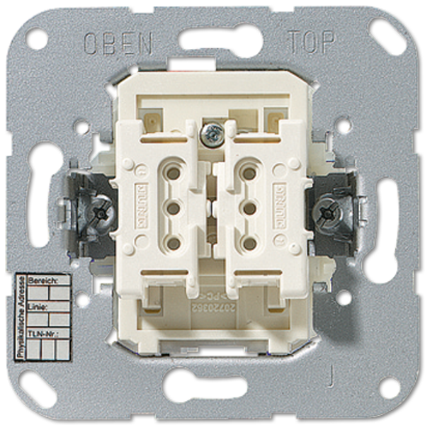 Bouton-poussoir KNX à 2 groupes conçu pour contrôler les systèmes KNX automatisés. Permet deux points d'actionnement distincts pour les fonctions de contrôle dans les installations domotiques ou immotiques. Installation encastrée dans les murs en plâtre. Fixation à l'aide de griffes et de vis. Compatible uniquement avec le système de bus KNX, ne prend pas en charge la communication radio ou d'autres protocoles de bus tels que LON ou Powernet.