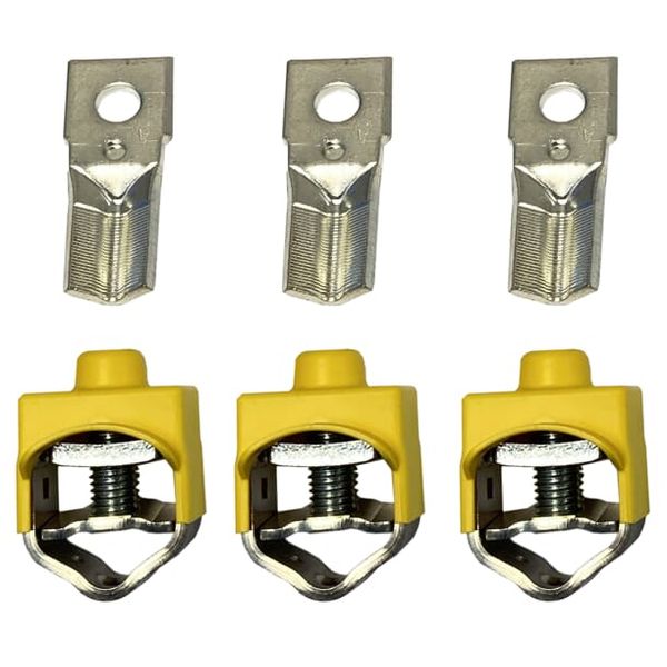 ZLBM/ZHBM size 123 V-clamp kit for -V switch versions. Kit contains of 3 pieces STS V-clamps and V-clamp plastic covers (1SEP621559R0001). Suitable cable cross sections: