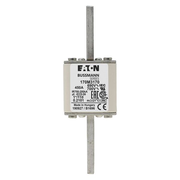 Fuse-link, high speed, 450 A, AC 690 V, compact size 1, 45 x 45 x 134 mm, aR, DIN, IEC, single indicator