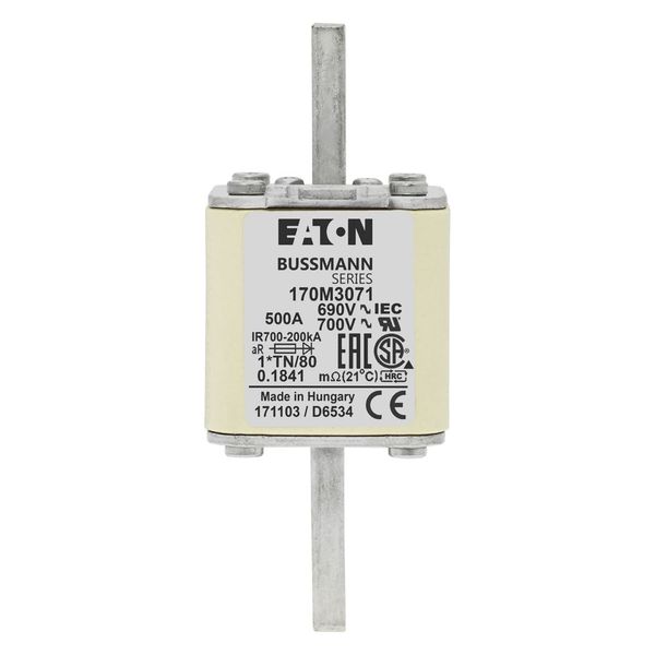 Fuse-link, high speed, 500 A, AC 690 V, compact DIN 1, 45 x 58 x 104 mm, aR, DIN, IEC, single indicator |