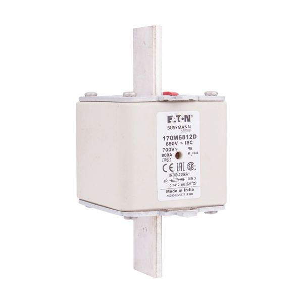 Fuse-link, high speed, 800 A, AC 690 V, DIN 3, aR, DIN, IEC, dual indicator, live gripping lugs |