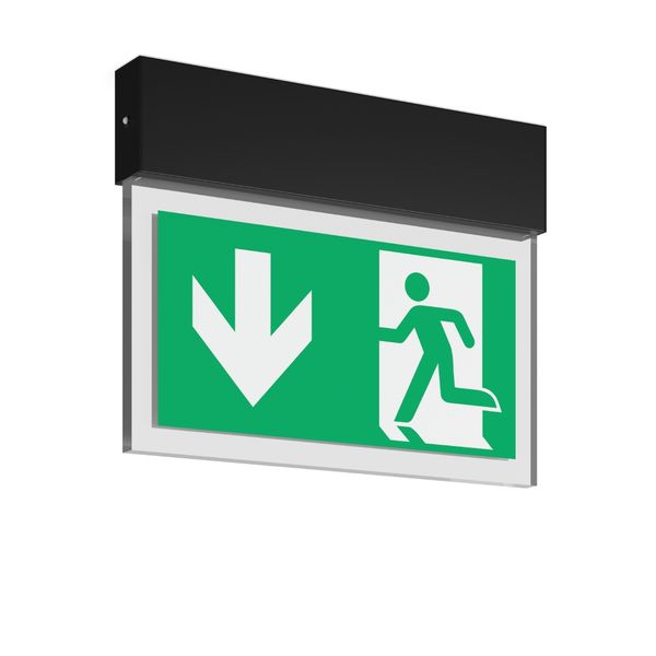 Luminaire for escape route identification. Housing: extruded aluminium profile, anodised or powder-coated. Display panel: highly transparent panel, plastic, with legend on one side/both sides. Electronic ballast included. Self-contained system with automatic self-test and feedback via DALI bus, only to RZB DALI monitoring system. Please indicate legend number when placing your order!