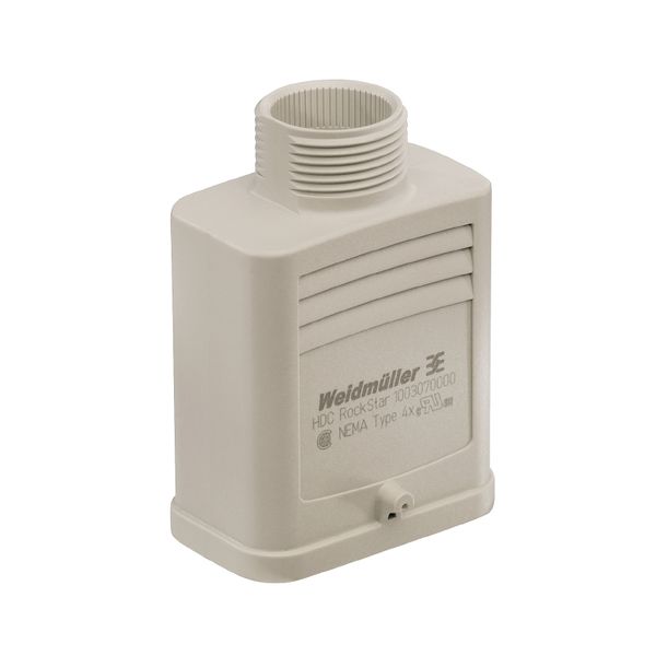 | Manufacture name | HDC enclosures, Size: HQ, Protection degree: IP65, in plugged condition, Cable entry from top, Plug housing, Side-locking clamp on lower side, Standard, Size of cable entries: PG 16 |