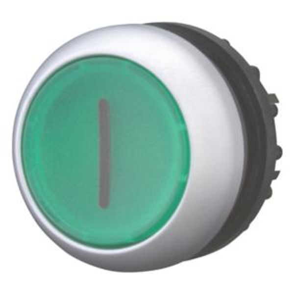 M22-DL-G-X1 Illuminated pushbutton actuator, RMQ-Titan, Flush, momentary, green, inscribed, Bezel: titanium