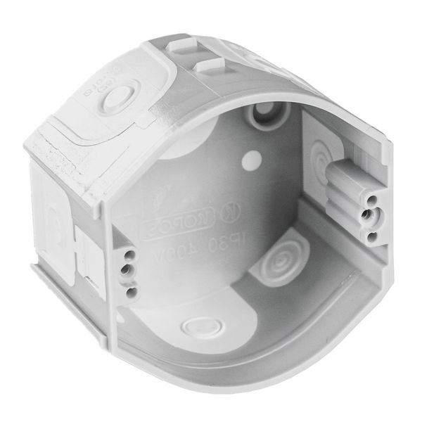 KP 68/D - Box instrumental, configuration KA, colour light grey, package - 100 pcs - possibility of connection in a continuous row with a pitch of 71 mm, boxes can be connected with boxes KPR 68/D, inlet openings made of elastic material, airtightness provided even with inserted cable or pipe, suitable for low energy or passive houses, instrument screws are equipped with a double-threaded thread for easier installation
