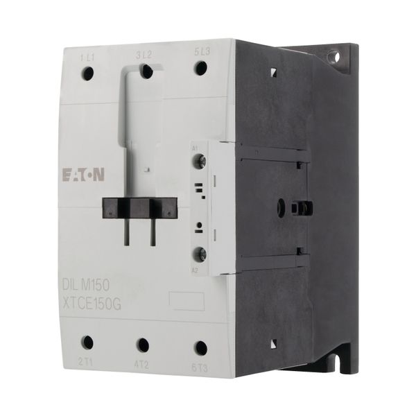 Contactor, Application: Contactors for Motors, Contactors up to 170 A, 3 pole, Utilization category: AC-1: Non-inductive or slightly inductive loads, resistance furnaces, NAC-3: Normal AC induction motors: starting, switch off during running, AC-4: Normal AC induction motors: starting, plugging, reversing, inching, Connection technique: Screw terminals, Notes: Also suitable for motors with efficiency class IE3., IE3-ready devices are identified by the logo on their packaging., Number of poles: 3 pole, Rated operational current AC-3 380 V 400 V: Ie= 150 A, Rated operational current AC-1 Conventional free air thermal current, 3 pole , 50 - 60 Hz Open at 40 °C: Ith =Ie= 190 A, enclosed: Ith= 144 A, Rated operational current AC-1 Conventional free air thermal current, 1 pole open: Ith= 400 A, enclosed: Ith= 360 A, Max. rating for three-phase motors, 50 - 60 Hz AC-3 220 V 230 V: P= 48 kW, 380 V 400 V: P= 75 kW, 660 V 690 V: P= 96 kW, Max. rating for three-phase motors, 50 - 60 Hz AC-4 220 V 230 V: P= 20 kW, 380 V 400 V: P= 33 kW, 660 V 690 V: P= 48 kW, Can be combined with auxiliary contact: DILM150-XHI(V).., DILM1000-XHI(V).., Instructions: Contacts to EN 50 012., integrated suppressor circuit in actuating electronics, Voltage AC/DC: AC operation