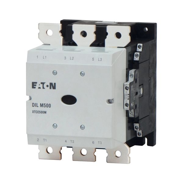 Contactor, Application: Contactors for Motors, Special-purpose devices rated for currents greater than 170 A, Utilization category: AC-1: Non-inductive or slightly inductive loads, resistance furnaces, NAC-3: Normal AC induction motors: starting, switch off during running, AC-4: Normal AC induction motors: starting, plugging, reversing, inching, Connection technique: Screw connection, Rated operational current AC-3 380 V 400 V: Ie= 500 A, Rated operational current AC-1 Conventional free air thermal current, 3 pole, 50 - 60 Hz Open at 40 °C: Ith =Ie= 800 A, enclosed: Ith= 600 A , Rated operational current AC-1 Conventional free air thermal current, 1 pole open: Ith= 1625 A, enclosed: Ith= 1500 A, Max. rating for three-phase motors, 50 - 60 Hz AC-3 220 V 230 V: P= 155 kW, 380 V 400 V: P= 265 kW, 660 V 690 V: P= 300 kW, Max. rating for three-phase motors, 50 - 60 Hz AC-4 220 V 230 V: P= 112 kW, 380 V 400 V: P= 200 kW, 660 V 690 V: P= 240 kW, Can be combined with auxiliary contact: DILM820-XHI…, Contacts N/O = Normally open: 2 N/O, Contacts N/C = Normally closed: 2 NC, Instructions: integrated suppressor circuit in actuating electronics, 660 V, 690 V or 1000 V: not directly reversing, Voltage AC/DC: AC operation