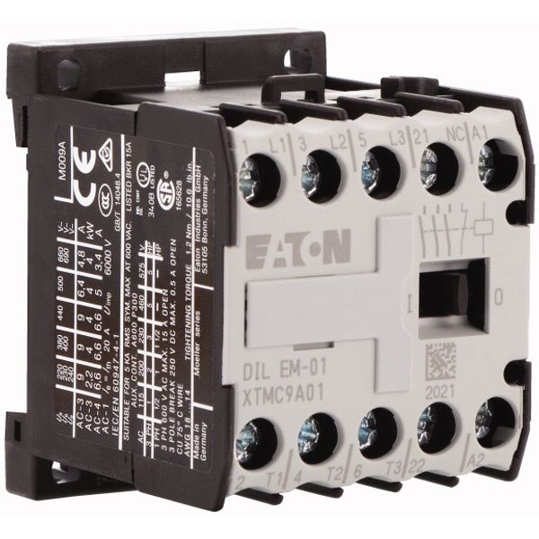 Contactor, 600 V 60 Hz, 3 pole, 380 V 400 V, 4 kW, Contacts N/C = Norm |
