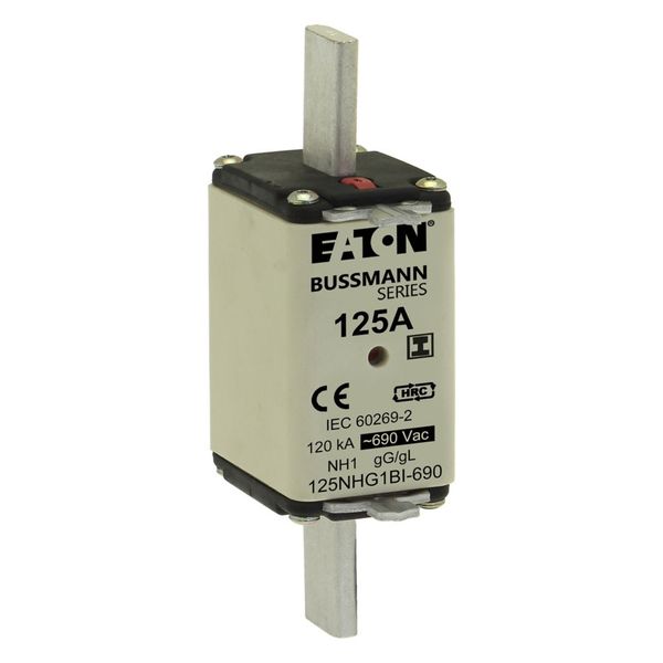 | Gamintojo pavadinimas | Fuse-link, LV, 125 A, AC 690V, NH1, gL/gG, IEC, dual indicator, insulated gripping lugs |