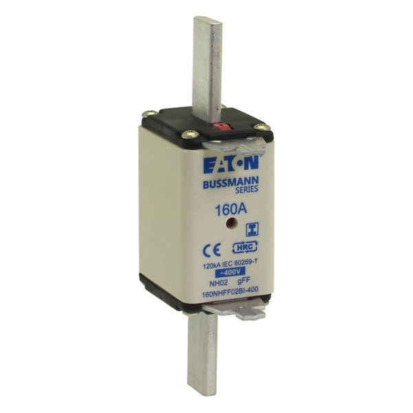 | Gamintojo pavadinimas | Fuse-link, LV, 160 A, AC 400 V, NH02, gFF, IEC, dual indicator, insulated gripping lugs |