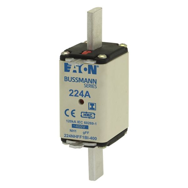 | Gamintojo pavadinimas | Fuse-link, LV, 224 A, AC 400 V, NH1, gFF, IEC, dual indicator, insulated gripping lugs |