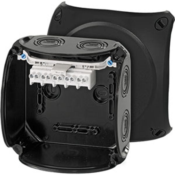 Junction box, outdoor, black, IP 66/67, 130x130x77, term.: 5-pole, 4 mm2, Cu (KF 0604 B) |