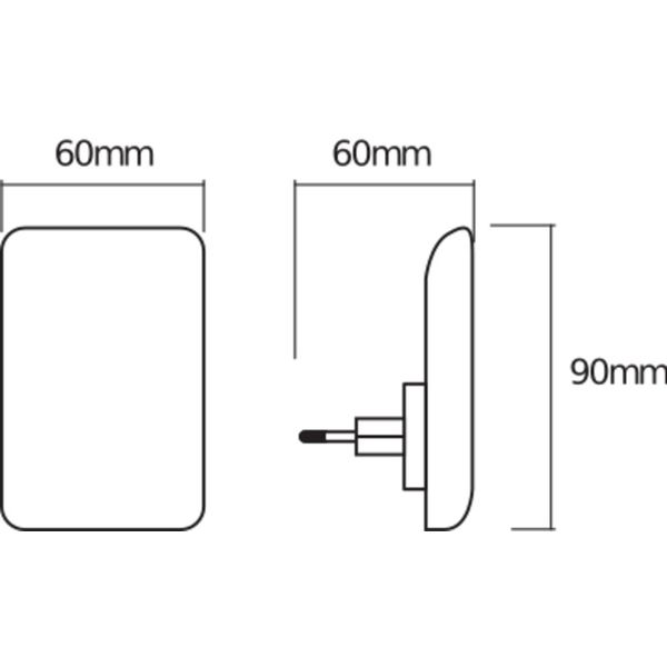 Socket nightlight with indirect white light. Product features: Integrated day/night sensor. Direct connection to a 220…240 V AC supply. Light emitted indirectly. Product benefits: Attractive and functional design. Plug and Play due to EU Plug. Automatically switches on and off according to the amount of available daylight. Areas of application: Children's bedrooms. Decorative domestic lighting. For indoor use only.
