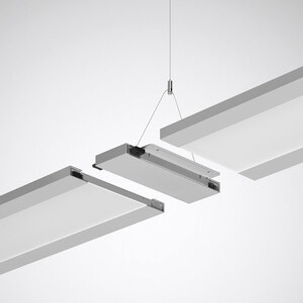 Mechanical and electrical connector for structuring a suspended continuous line. For suspended luminaires of the series Luceos. Made of sheet steel, powder-coated silver-grey. Dimensions (L x W): 144 mm x 240 mm, H = 22,4 mm. Triangle rope suspension already included in the scope of delivery. Accessories available for 10 years from date of invoice subject to reasonable modifications in the interests of progress.