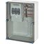 Geïsoleerde laagspanningsschakelapparatuur-combinatie in kastbouwvorm conform IEC 61439-2 voor wandopbouw. Kasten moeten geschikt zijn voor buitenopstelling; er moet rekening worden gehouden met de invloed van de weersomstandigheden op de bedrijfsmiddelen. Kastonderdelen en -deksel van slagvast polycarbonaat, halogeen- en siliconenvrij, kleur RAL 7035, transparant deksel met snelsluitingen voor gereedschapsbediening. Brandgedrag conform DIN VDE 0471 Deel 2 – Gloeidraadtest 960 °C. Maximale waterabsorptie 10 mg conform DIN 53473. Beveiligingsmaatregel: dubbelgeïsoleerd (beschermingsklasse II). Merk: HENSEL Mi-verdelers. NH-mespatroonlastscheiderkast NH 1, 3-polig, geschikt voor railsystemen 5-polig. Beschermingsgraad: IP 65 conform IEC 60 529. Afmetingen HxBxD 600 x 450 x 255 mm