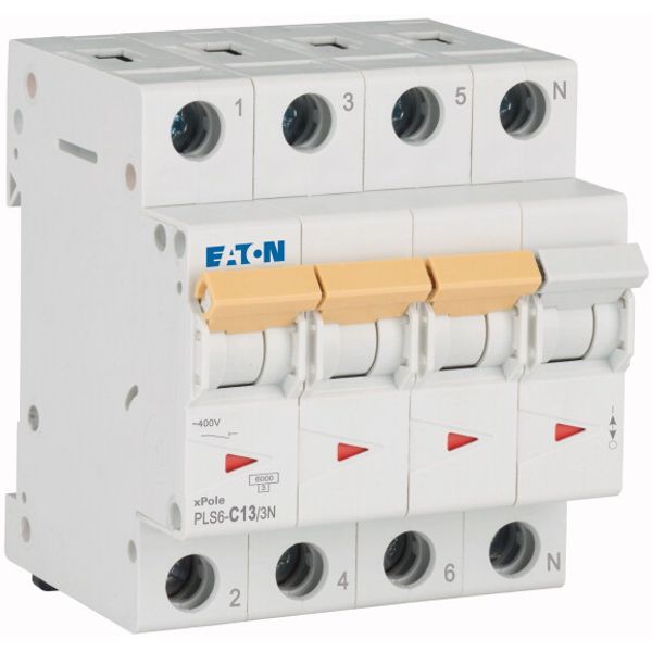 Miniature circuit breaker (MCB), PLS6, 3-pole+N, tripping characteristic: C, rated current In: 13 A, rated switching capacity according to IEC/EN 60898-1: 6 kA, Switchgear for residential and commercial applications