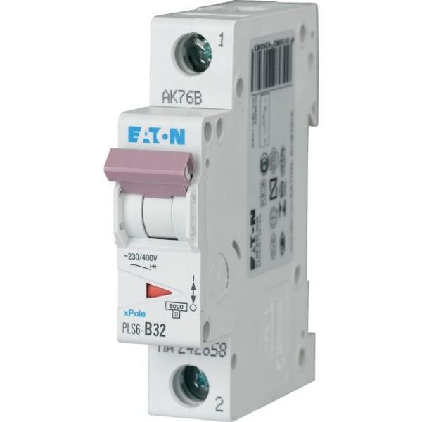 Miniature circuit breaker (MCB), PLS6, 1-pole, tripping characteristic: D, rated current In: 32 A, rated switching capacity according to IEC/EN 60898-1: 6 kA, Switchgear for residential and commercial applications