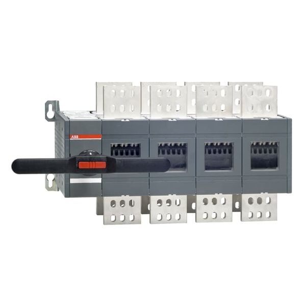 2500A, 4 pole manual change-over switch including a black plastic IP65 I-0-II pistol type handle (see the table below), shaft and bolt set for the cable connection. Handle padlockable in the 0-position, door interlock in the I- and II- positions and when padlocked.