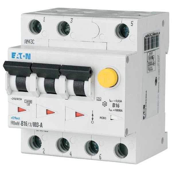RCD/MCB combination, 10 A, 100 mA, MCB trip characteristic: D, 3p, RCD trip characteristic: A |