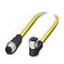 Sensor/actuator cable, 3-position, PVC, yellow, Plug straight M12, coding: A, on Socket angled M12, coding: A, cable length: 1.5 m