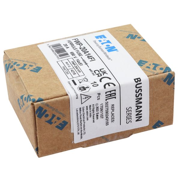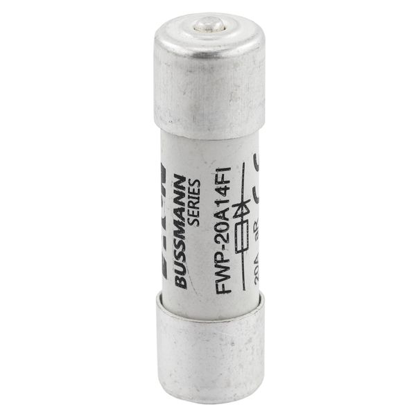 Fuse, Fuse-link, high speed, 20 A, AC 700 V, 14 x 51 mm, aR, UL, with striker, cylindrical, protection of DC common bus, DC drives, power converters/rectifiers and reduced voltage starters, UL248, Breaking Capacity 200 kA, Optional accessories fuse-holder CH141B